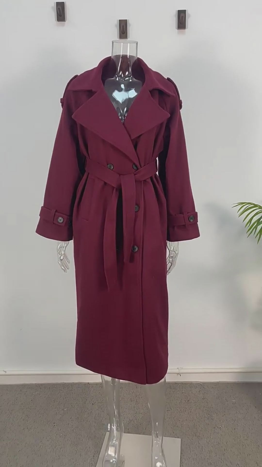 Diseñado con un aspecto refinado y moderno, este abrigo largo presenta una silueta estructurada que alarga la figura y crea un look instantáneamente elegante. El rico tono vino añade profundidad y carácter, convirtiéndolo en una pieza destacada sin exageraciones.